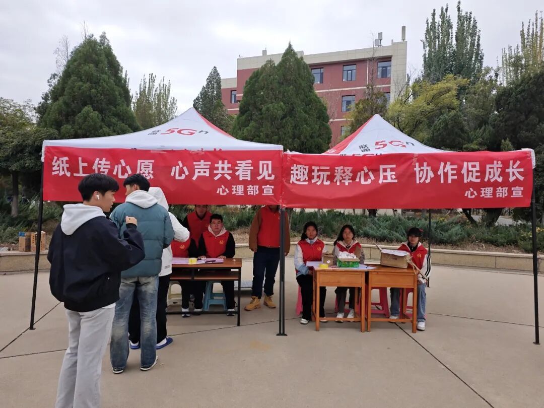 为营造积极健康的校园心理氛围,2025年10月18日,yl8858永利集团于在活动中心小广场举办了“趣玩释心压,协作促成长”和“纸上传心愿,心声共看见”心理健康教育主题系列活动。