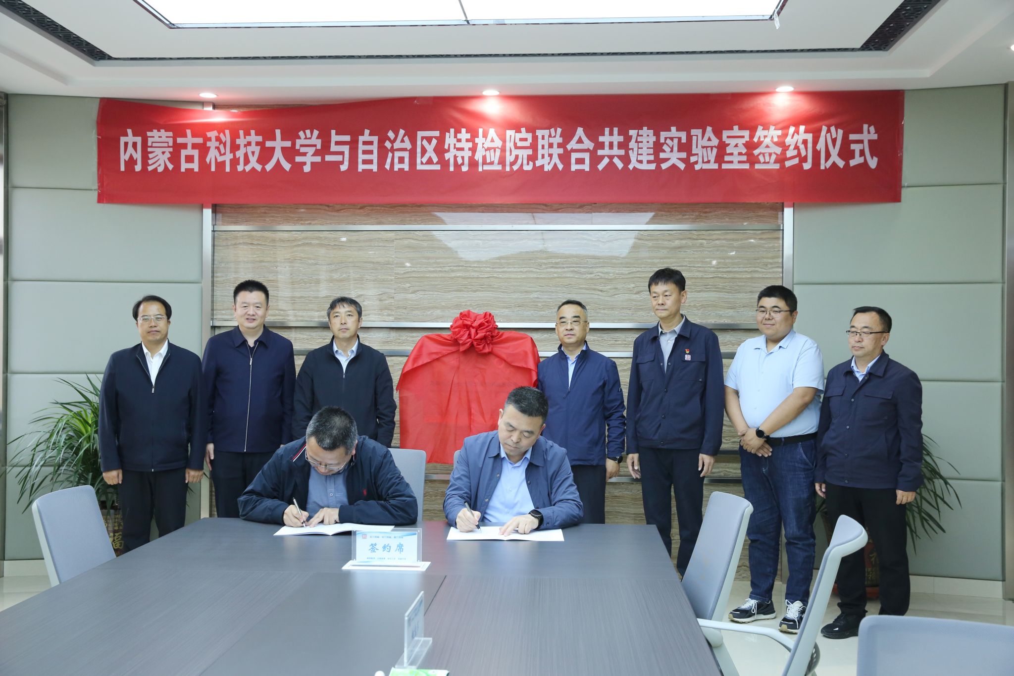 会后,韩永全、张东宏共同为“能源装备安全保障智能检测技术实验室”揭牌。李文官、王少锋代表双方签署合作协议。