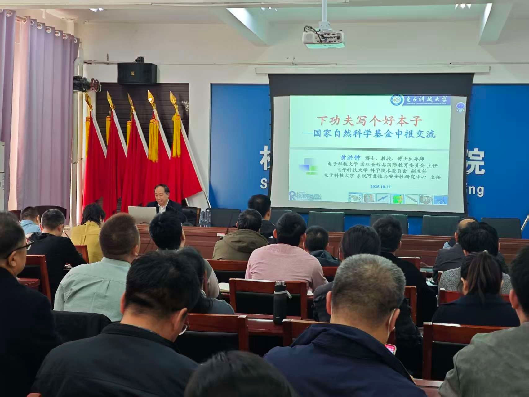 10月23日下午,yl8858永利集团在腾飞楼C509会议室开展“机械·北疆”讲堂第七期活动。本次讲座邀请电子科技大学黄洪钟教授作题为“下功夫写个好本子——国家自然科学基金申报交流”的专题学术报告。会议由学院科研副院长郭晓峰主持,众多师生积极参与此次讲座。